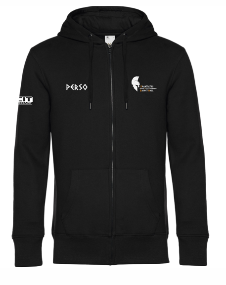 Sweat zippé avec capuche, logo du club côté cœur et dos.